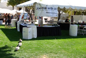People from ages 2 to 82 participated in journaling activities using free-form needlework, rubber-stamping, image transfer, book making and writing prompts all conducted by experienced artists and writers. Visitors to the festival were fascinated with the story behind 1000 Journals